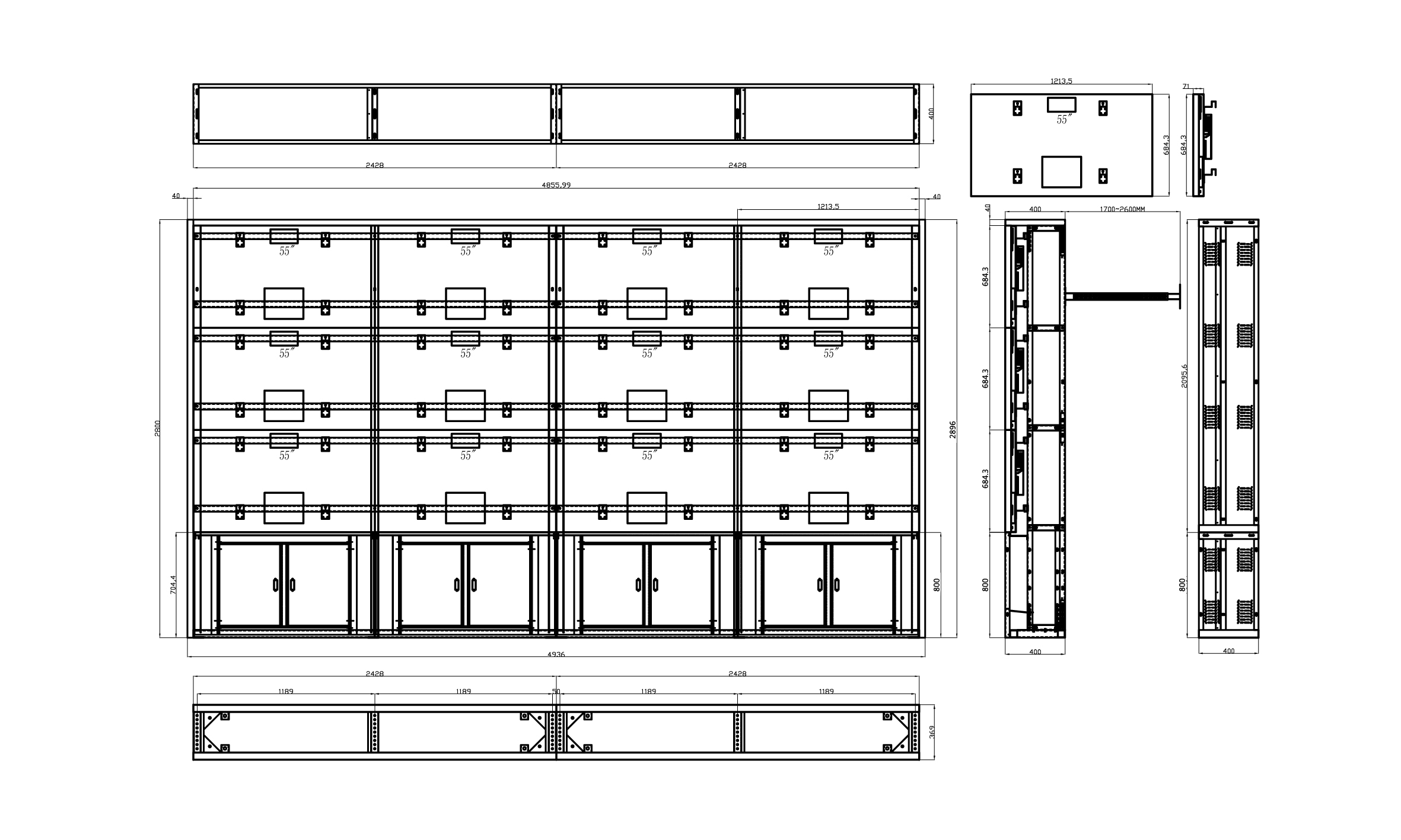 根據(jù)施工現(xiàn)場結(jié)構(gòu)狀況,大屏的結(jié)構(gòu)我們采用抽屜式設(shè)計方案,所有的顯示單元都可以獨立抽出,不需要動整個拼接墻就可以進行屏體的拆卸和安裝。